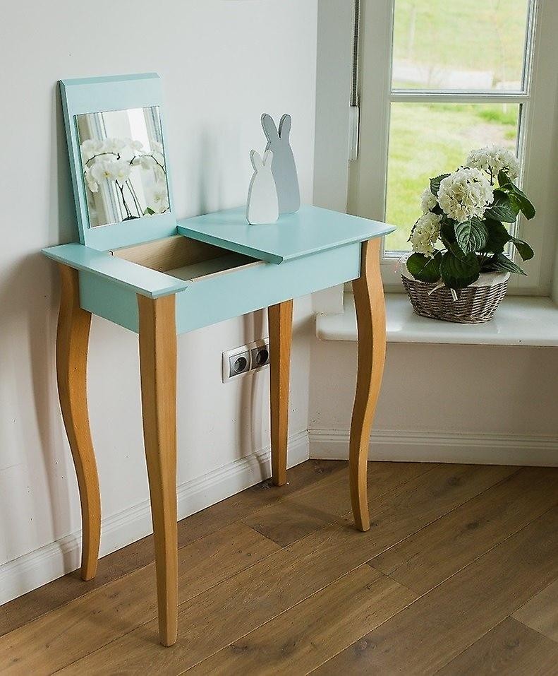 La coiffeuse est en bois de hêtre et en MDF laminé et laqué. Cela en fait non seulement un meuble magnifiquement conçu, mais aussi un produit durable. Les pieds colorés sont finis dans une couleur noire élégante et le plateau de la table a une épaisseur de 19 mm, ce qui donne un aspect robuste et solide.