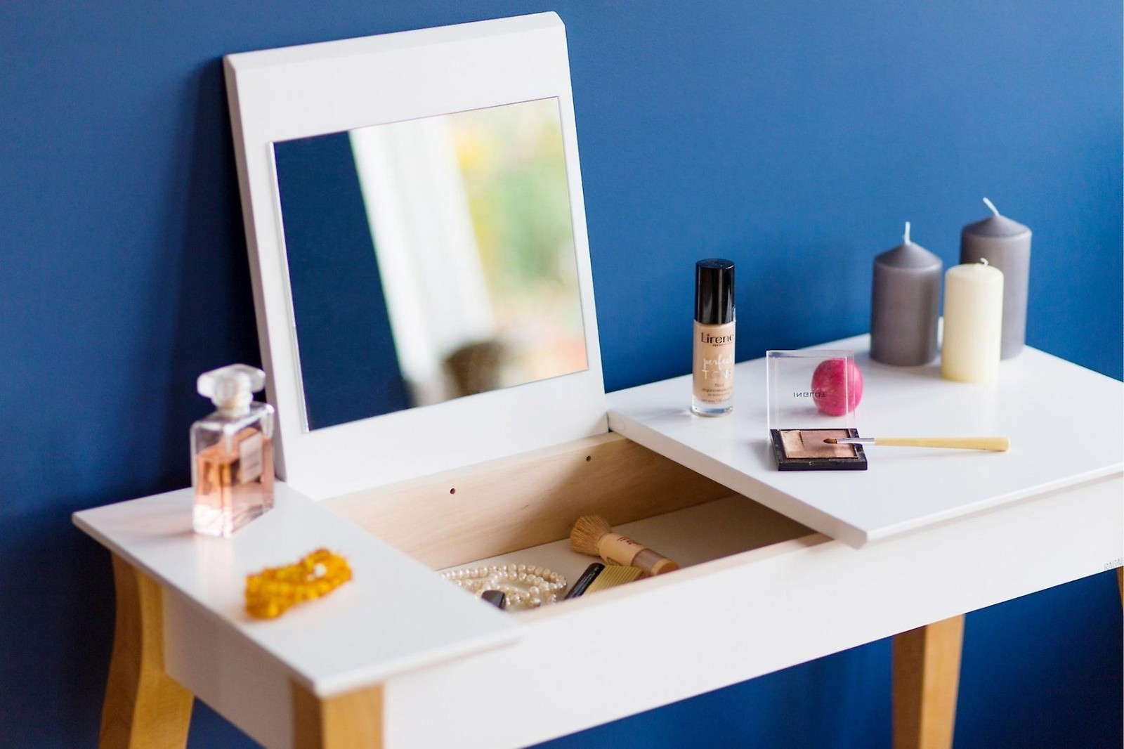 La coiffeuse Lillo est un bel ajout à n'importe quelle chambre ou dressing. D'une largeur de 105 cm, la table offre suffisamment d'espace de travail et les dimensions du meuble de rangement (L 54 cm x P 24 cm x H 7 cm) offrent un espace de rangement suffisant pour tous vos produits cosmétiques.
