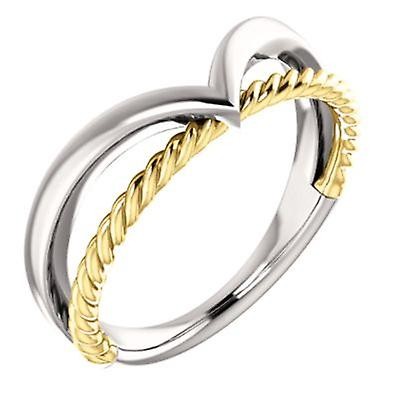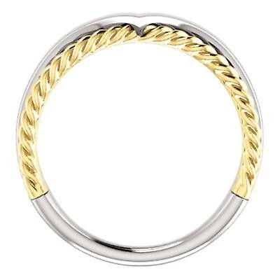 Bague en or blanc 14 carats et or jaune poli avec motif de corde à espace négatif - Taille 6,5 - 3,5 grammes en or jaune 14 carats - Coffret à bijoux prêt à offrir inclus