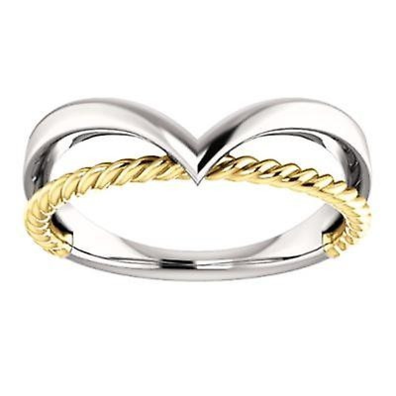Bague en or blanc 14 carats et or jaune poli avec corde à espace négatif, taille 6,5, bijoux cadeaux €1580.0 |