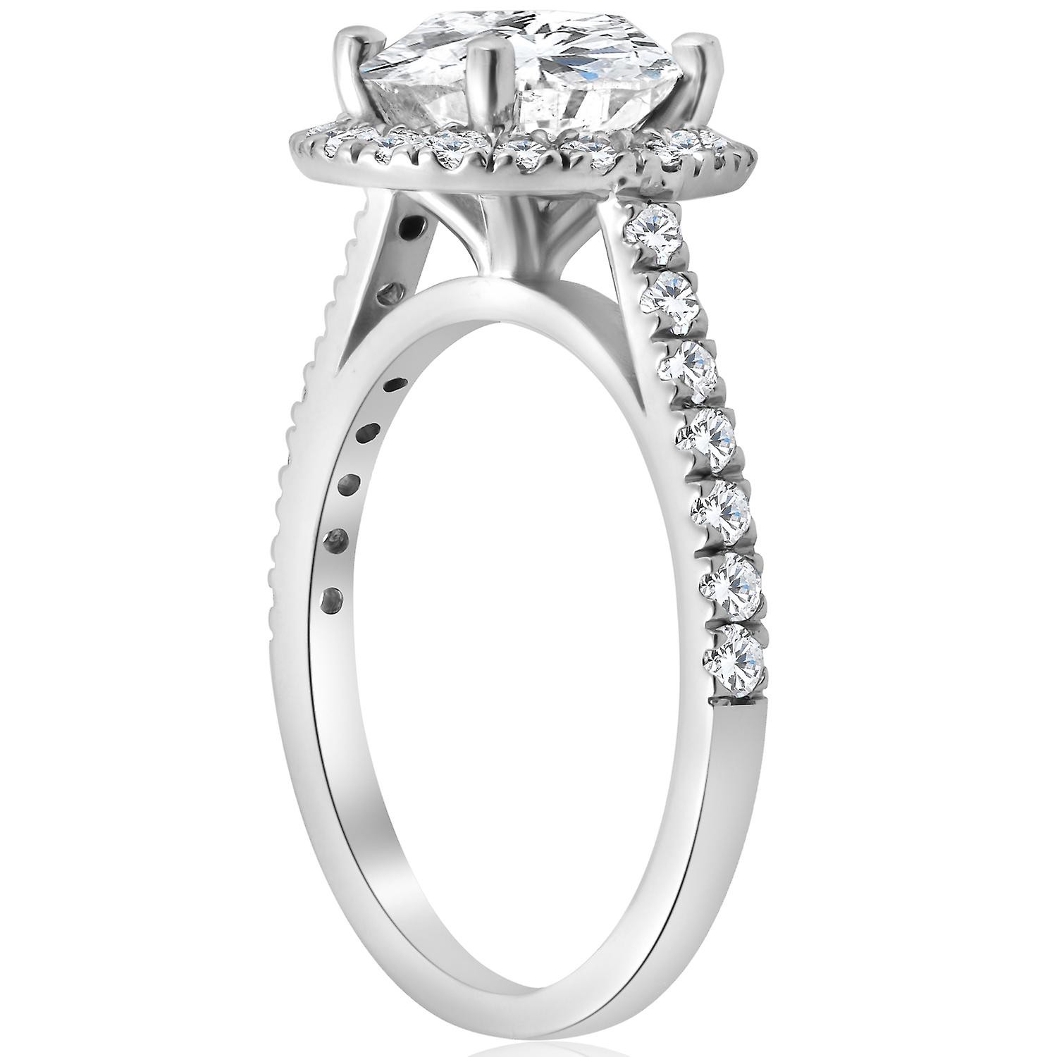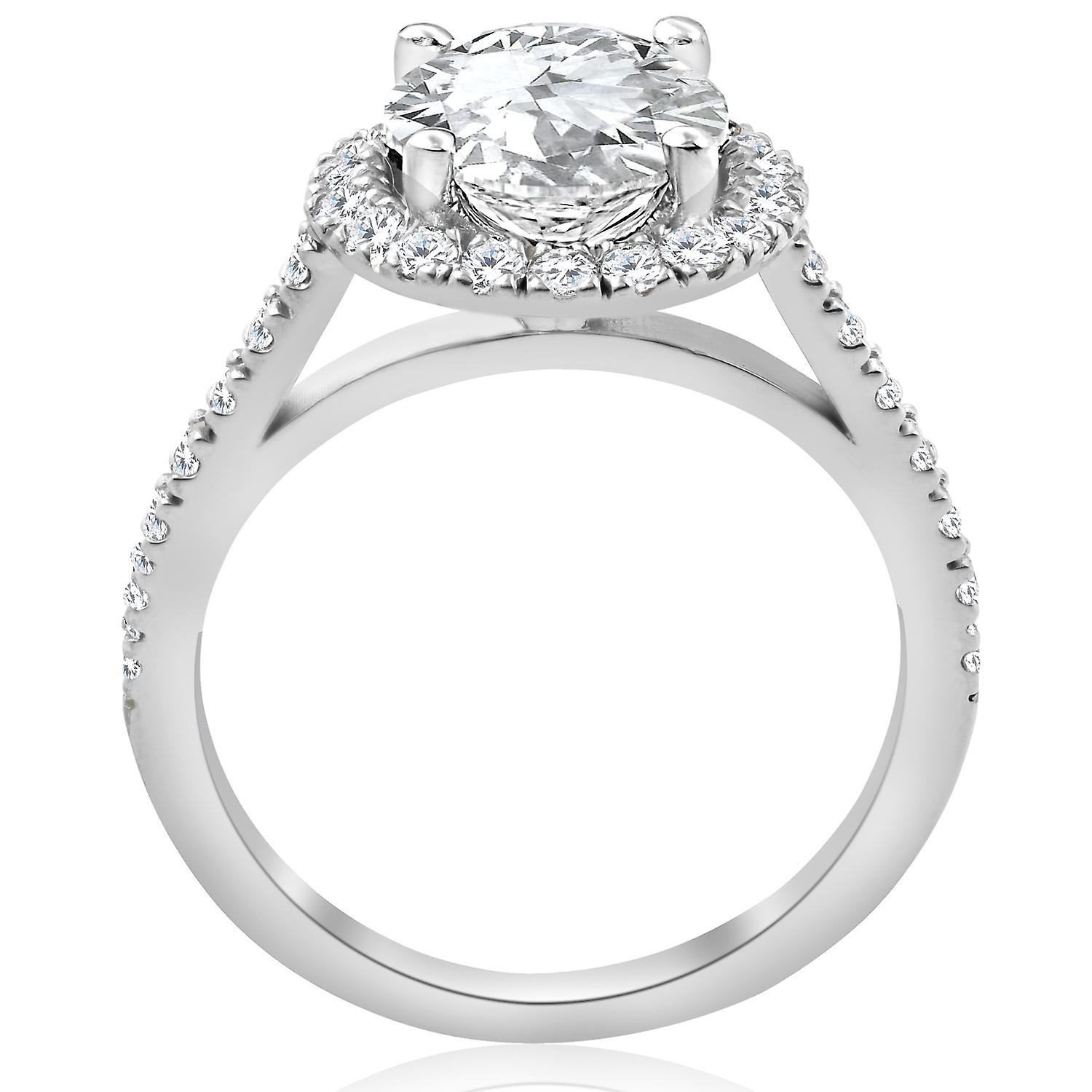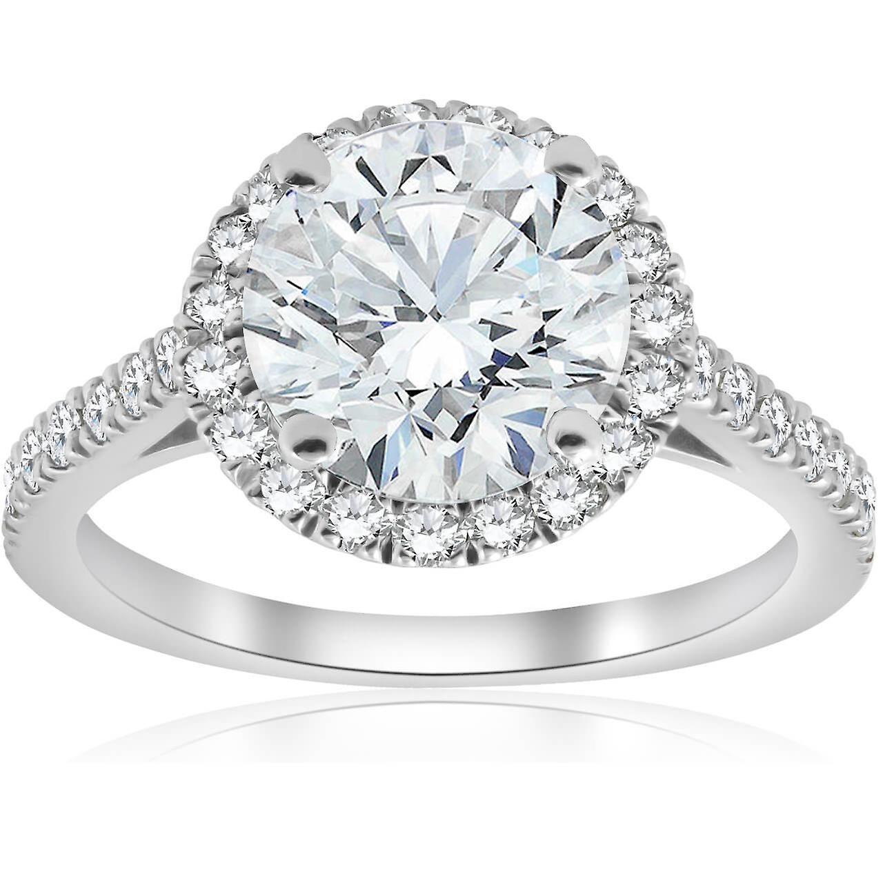 Bague de fiançailles en or blanc 14 carats avec diamant rond taille halo de 2 1/2 ct