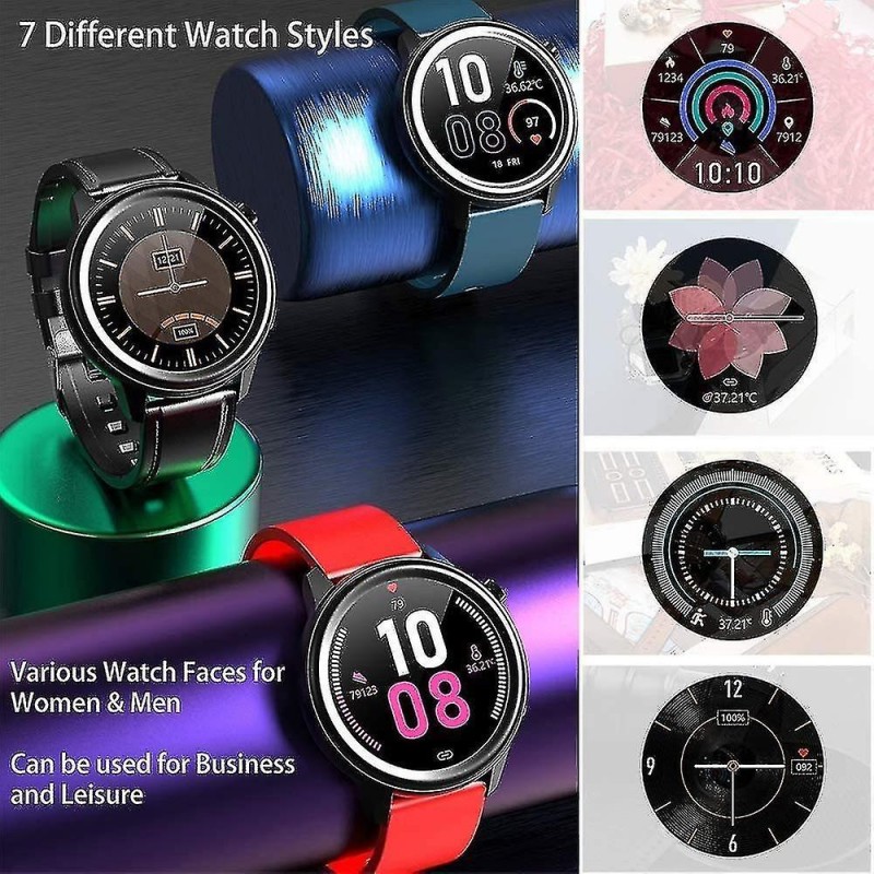 DIFFÉRENTES FONCTIONS telles que l'affichage de l'heure et de la date, l'affichage de la météo, la notification d'appel et de message, le compteur de pas, l'enregistrement de la consommation de calories, l'enregistrement du kilométrage sportif, 7 modes sportifs, moniteur de fréquence cardiaque, diagnostic ECG / PPG / Ai, contrôle de la caméra, moniteur de sommeil, rappel de sédentarité, chronomètre, entraînement respiratoire.MONITEUR DE TEMPÉRATURE CORPORELLE 24 HEURES Vous pouvez mesurer votre température corporelle pendant 24 heures, les données de température corporelle peuvent être enregistrées dans l'application [SmartHealth], vous pouvez surveiller votre température corporelle et surveiller votre santé à tout moment.GESTION DU SPORT ET DE LA SANTÉ Suivi de la mesure de plusieurs données sportives et de santé : mode multisport, podomètre, distance, calories ; Diagnostic ECG / PPG / AI / moniteur de fréquence cardiaque. Faites attention à votre santé tout le temps. Les données de sport et de santé de la montre intelligente sont uniquement à titre de référence, veuillez écouter les conseils du médecin.MONITEUR DE SOMMEIL ET AFFICHAGE MÉTÉO Fonction de surveillance du sommeil : lorsque vous vous endormez, la montre intelligente calcule automatiquement la qualité de votre sommeil, synchronise les données avec l'application. Vous pouvez connaître la qualité du sommeil. La fonction d'affichage météo affichera les informations météorologiques actuelles et la qualité de l'air. (Remarque : vous devez obtenir les informations de localisation de votre téléphone pour afficher la météo).IP68 IMPERMÉABLE ET CHARGE MAGNÉTIQUE IP68 a d'excellentes performances d'étanchéité et peut répondre à la plupart des besoins quotidiens. (Remarque : ne pas tremper dans l'eau profonde pendant une longue période. Ne le portez pas non plus dans les sources chaudes et les bains chauds.) Chargement par aspiration magnétique, le temps de charge est d'environ 3 à 4 heures, le temps d'utilisation est d'environ 5 à 13 jours, en veille 20 à 40 jours.