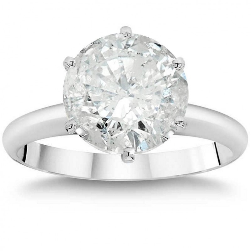 Bague de fiançailles solitaire en or blanc 14 carats avec diamant rond amélioré de 3 carats